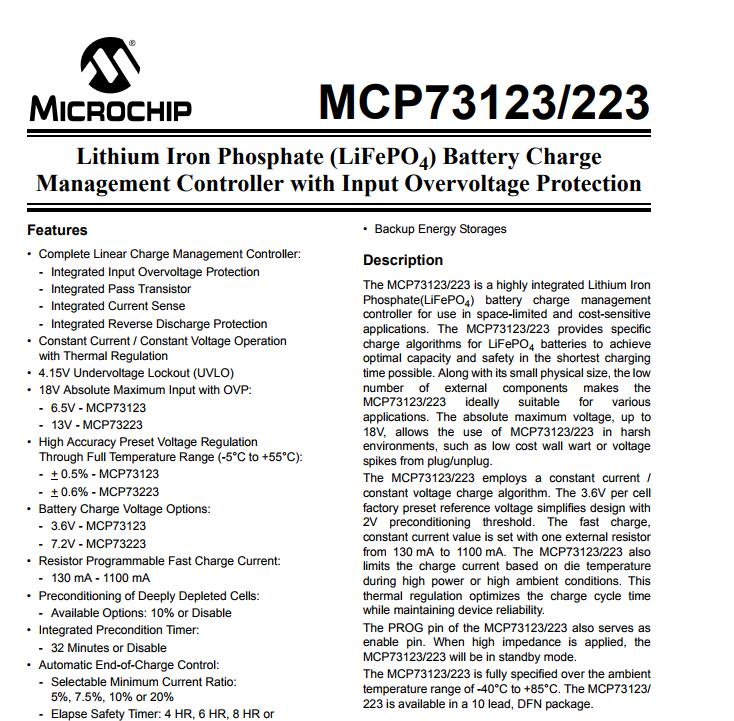 Microchip: MCP73123-22SI/MF MCP73123T-22SI/MF MCP73223-C2SI/MF MCP73223T-C2SI/MF MCP73123T22SI
