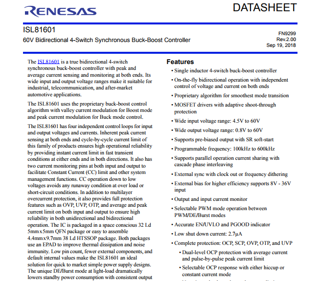 Renesas Electronics: ISL81601FRZ-T ISL81601FRZ ISL81601FRZ-T7A ISL81601FVEZ ISL81601FVEZ-T ISL81601FVEZ-T7A