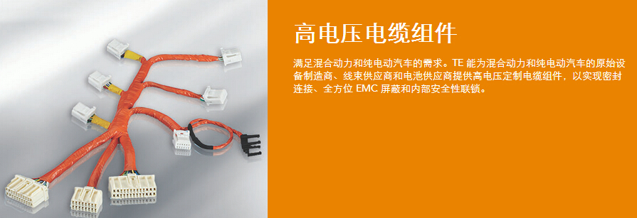 TE高电压电力行业的。 TE为混合动力和纯电动汽车提供高电压电缆组件,以实现密封连接、全方位 EMC 屏蔽和内部安全性联锁。这些电缆组件可以进行定制,可以为高电压线束提供系统集成。