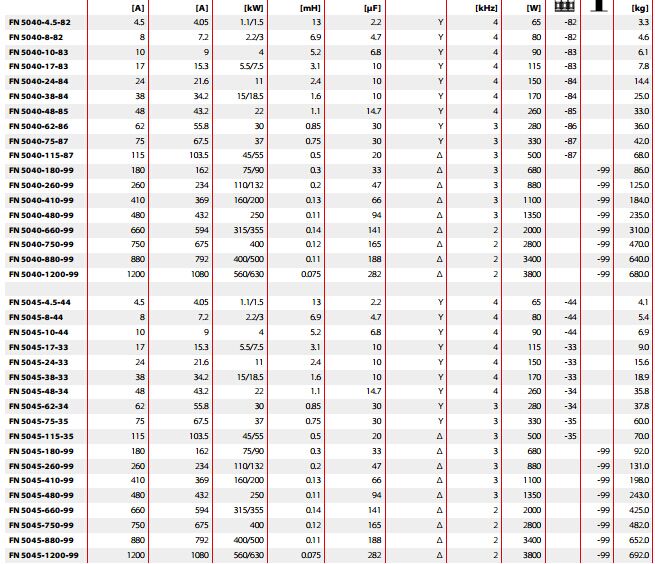 Schaffner: FN5040-8-82 FN5040-10-83 FN5040-17-83 FN5040-24-84