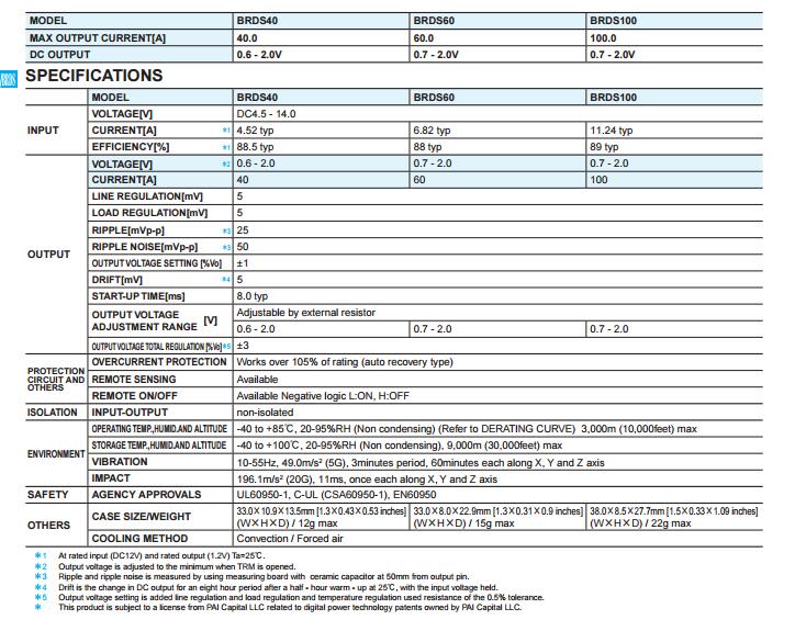 BRDS40 Cosel原厂非隔离式DC/DC转换器 快速发货