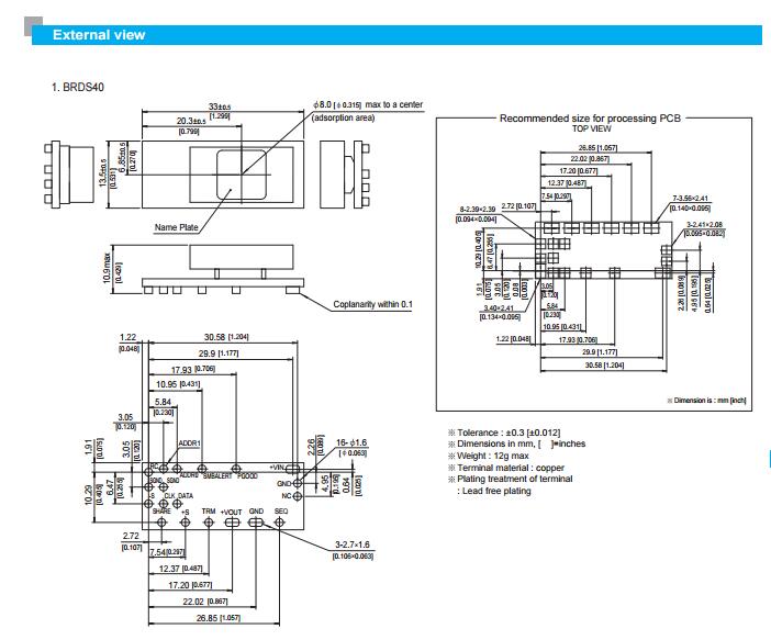 BRDS40 600 mV to 2 V 40 A 33 mm x 13.5 mm x 10.9 mm