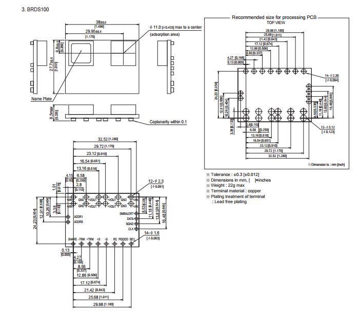 BRDS100 700 mV to 2 V 100 A 38 mm x 27.7 mm x 8.5 mm