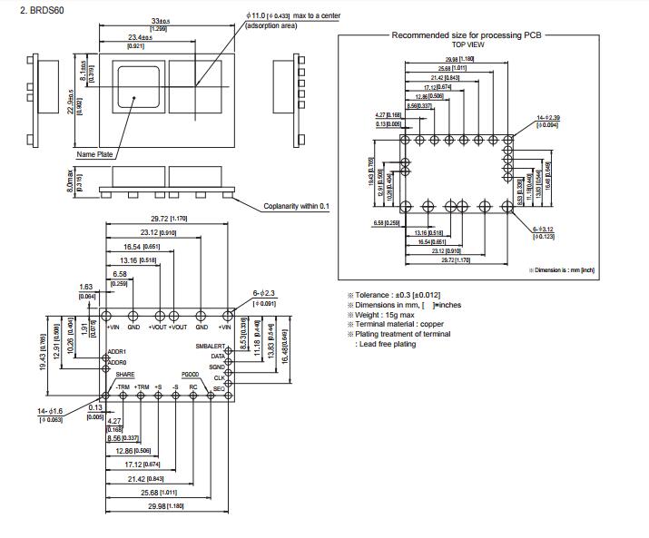 BRDS60 700 mV to 2 V 60 A 33 mm x 22.9 mm x 8 mm